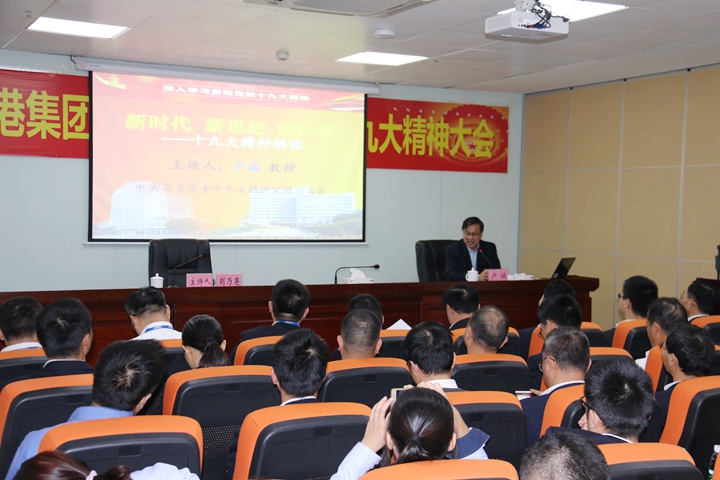 12月8日下午,茂名港集團(tuán)召開(kāi)黨的十九大精神宣講報(bào)告會(huì),邀請(qǐng)了市委宣講團(tuán)成員、廣東石油化工學(xué)院盧誠(chéng)教授作專題輔導(dǎo)講座。集團(tuán)黨委書記、董事長(zhǎng)劉乃英主持報(bào)告會(huì)。 報(bào)告中,盧誠(chéng)教授圍繞“新時(shí)代、新思想、新征程”這一主題,從“全面認(rèn)識(shí)十九大報(bào)告的新內(nèi)涵”、“十九大對(duì)《黨章》的修改”、“十九大給我們帶來(lái)的新生活”三個(gè)部分,圍繞黨的十九大主題和主要成果、習(xí)近平新時(shí)代中國(guó)特色社會(huì)主義思想、新時(shí)代中國(guó)特色社會(huì)主義基本方略、新時(shí)代中國(guó)特色社會(huì)主義全面戰(zhàn)略安排部署等方面對(duì)黨的十九大精神進(jìn)行了細(xì)致深入的解讀。