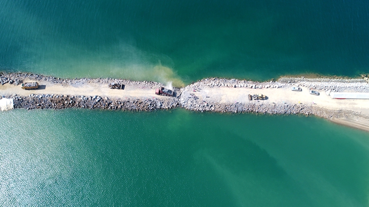 在粵西LNG造陸項目現(xiàn)場,趙廣輝認真聽取了項目負責人員關(guān)于項目合攏情況的匯報,詳細了解項目后續(xù)工作規(guī)劃。他肯定了茂名港集團作為業(yè)主單位在項目建設(shè)過程中不等不靠、主動作為,在與東西防波堤工程體量相當?shù)那闆r下,克服了資金緊、任務(wù)重、風險大、協(xié)調(diào)難等重重困難,在疫情期間解決了復(fù)工難的問題,順利實現(xiàn)了項目的合攏,標志著粵西LNG造陸項目基本具備交地條件,再次創(chuàng)造了屬于茂名港人的奇跡。他指出,粵西LNG造陸項目的建成,為粵西LNG接收站項目的落地夯實了基礎(chǔ),對濱海新區(qū)發(fā)展綠色臨港產(chǎn)業(yè)具有重要而深遠的意義。他希望茂名港集團繼續(xù)發(fā)揮好濱海新區(qū)籌融資和項目建設(shè)平臺作用,充分總結(jié)、運用粵西LNG造陸項目建設(shè)管理經(jīng)驗,攻堅克難,進一步助力濱海新區(qū)加快向海而興發(fā)展。