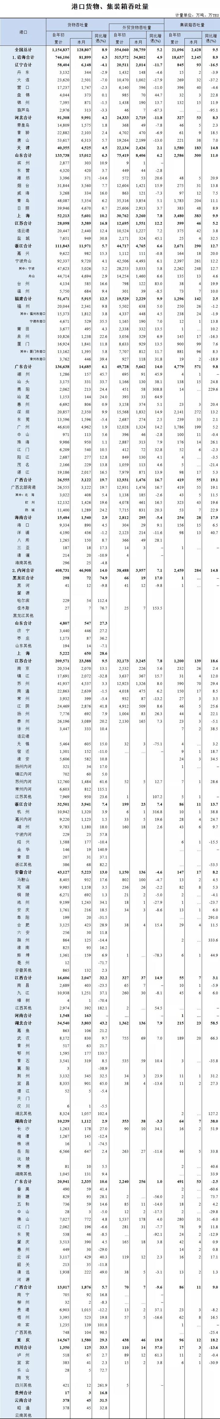 根據(jù)交通運(yùn)輸部數(shù)據(jù),1-9月,全國(guó)港口完成貨物吞吐量115.48億噸,同比增長(zhǎng)8.9%;完成集裝箱吞吐量2.11億TEU,同比增長(zhǎng)9.5%。其中,沿海港口完成貨物吞吐量74.6億噸,同比增長(zhǎng)6.3%;完成集裝箱吞吐量1.86億TEU,同比增長(zhǎng)8.9%。 9月份,兩大榜單排名未見變化,只是增速進(jìn)一步放緩,集裝箱吞吐量方面東莞港已與去年持平,福州港吞吐量增速轉(zhuǎn)為負(fù)數(shù),不過從總體來看,集裝箱吞吐量與貨物吞吐量的增速降幅不大,已進(jìn)入平穩(wěn)增長(zhǎng)區(qū)間。從海關(guān)數(shù)據(jù)來看,9月份當(dāng)月進(jìn)出口同比增長(zhǎng)15.4%,增速較8月份回落了3.5個(gè)百分點(diǎn)。 港口圈認(rèn)為,這不意味著港口總體向好的發(fā)展趨勢(shì)就此打住,9月份,臺(tái)風(fēng)對(duì)長(zhǎng)三角、東南沿海、珠三角各大港口生產(chǎn)運(yùn)輸都有影響,限電也波及各制造業(yè)大省,可能導(dǎo)致出口貨物減少。但這些因素的陰霾不會(huì)持續(xù)太久,在國(guó)家力保煤電供應(yīng)的政策下,第四季度港口生產(chǎn)數(shù)據(jù)仍將保持相對(duì)穩(wěn)定的增長(zhǎng)。 附交通運(yùn)輸部完整數(shù)據(jù):