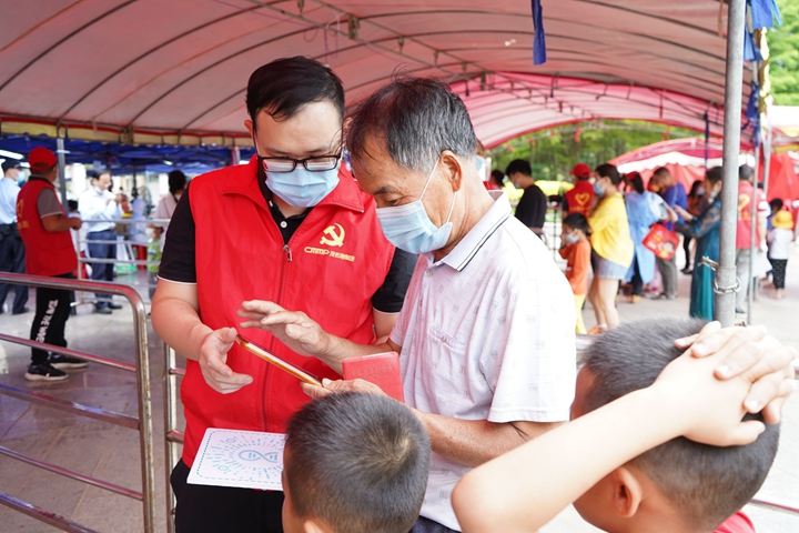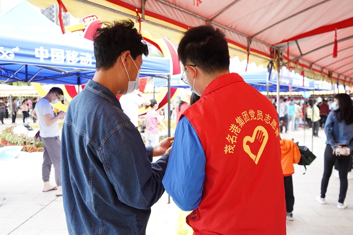 3月27日,為保障群眾核酸采樣秩序正常,根據(jù)上級(jí)安排,集團(tuán)黨委組織黨員志愿服務(wù)隊(duì)火速前往南香公園采樣點(diǎn)支援全員核酸檢測(cè)工作,讓黨旗在防控疫情斗爭(zhēng)第一線(xiàn)高高飄揚(yáng)。 集團(tuán)黨員志愿者們按計(jì)劃時(shí)間提前一小時(shí)到采樣點(diǎn),向醫(yī)務(wù)人員虛心學(xué)習(xí),了解檢測(cè)服務(wù)工作中最常見(jiàn)的問(wèn)題及解決方法,確保能夠?yàn)楝F(xiàn)場(chǎng)群眾提供最迅速準(zhǔn)確的志愿服務(wù)。采樣開(kāi)始后,集團(tuán)黨員志愿服務(wù)隊(duì)隊(duì)員們奔走忙碌于人流中,有序地疏導(dǎo)人流、維護(hù)秩序,督促?gòu)V大群眾遵守公共場(chǎng)所戴口罩、不聚集、保持1米線(xiàn)等規(guī)定。服務(wù)中,志愿者們?yōu)槿罕姶鹨山饣蟆⑾檻]、安撫緊張情緒,并指引和幫助群眾們打開(kāi)核酸檢測(cè)小程序做好信息錄入等工作。