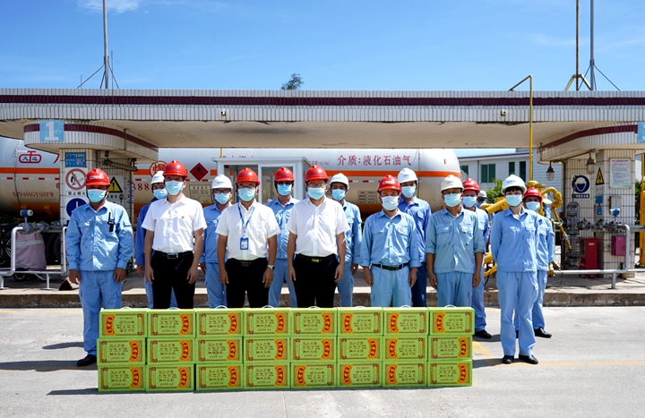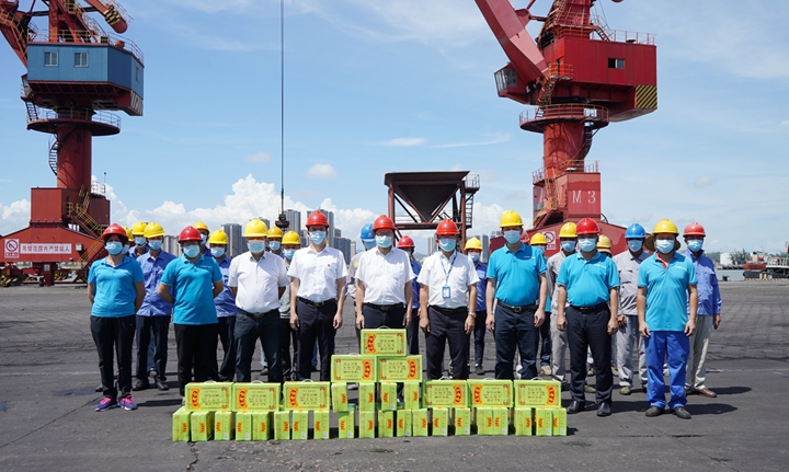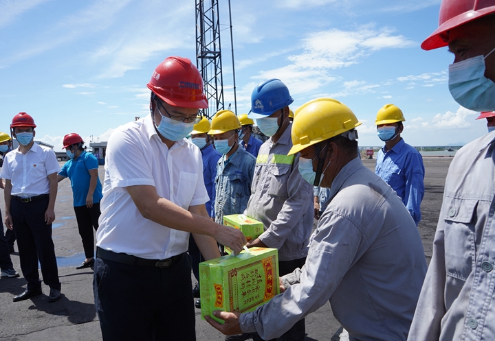 7月14日,集團(tuán)黨委委員、副總裁、工會(huì)主席楊超燦率隊(duì)到集團(tuán)下屬港口經(jīng)營(yíng)公司碼頭作業(yè)現(xiàn)場(chǎng)、中油王港公司庫(kù)區(qū)、博賀新港區(qū)重點(diǎn)項(xiàng)目施工現(xiàn)場(chǎng)等處“送清涼”,為奮戰(zhàn)一線的職工發(fā)放防暑降溫飲品、用品。