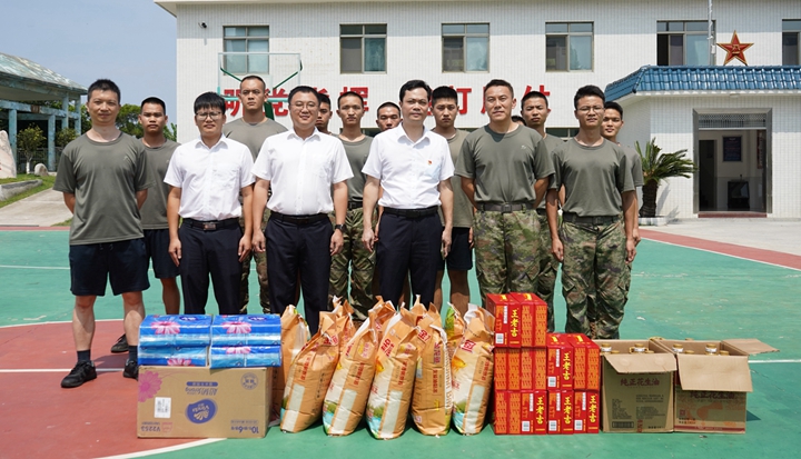 7月30日,根據(jù)集團黨委工作部署,集團黨委副書記、總裁肖炳璋率隊到蓮頭嶺某部開展“八一”建軍節(jié)擁軍慰問活動,向部隊官兵致以節(jié)日的祝福和誠摯的問候。 慰問中,肖炳璋與官兵們親切交談,詳細詢問了官兵的日常生活、學習和執(zhí)勤訓練情況,對他們?yōu)槊?jīng)濟社會發(fā)展作出的重大貢獻表示衷心感謝和崇高敬意。他表示,茂名港集團的快速發(fā)展,離不開駐地部隊的有力支持。集團將一如既往地關(guān)心和支持軍隊建設,用心用情用力做好擁軍優(yōu)屬工作。他希望,雙方不斷加強溝通交流,推動軍民融合深度發(fā)展,打造和諧穩(wěn)定的優(yōu)良港口營商環(huán)境,攜手共同應對當前復雜的經(jīng)濟形勢和多重困難挑戰(zhàn),共同譜寫新時代雙擁工作新篇章。