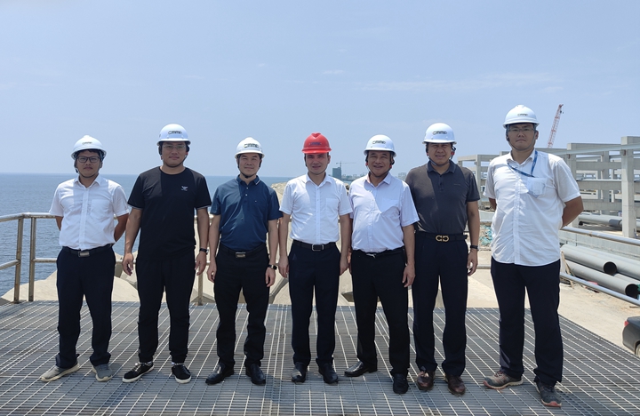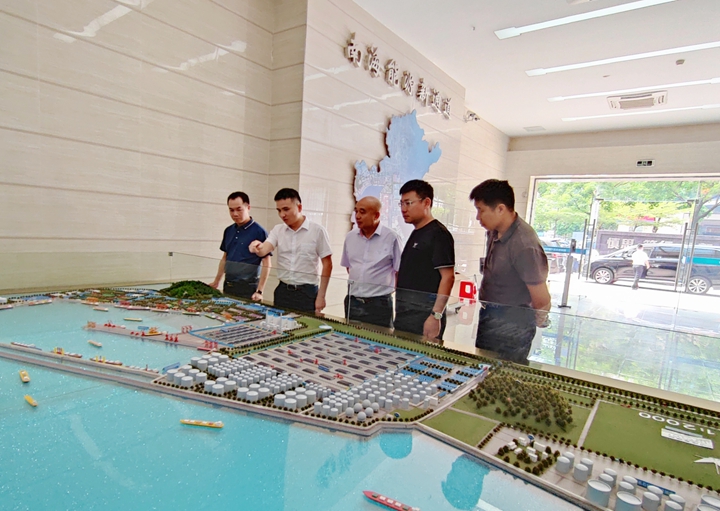 陳建興一行先后到了博賀新港區(qū)東區(qū)化工倉儲(chǔ)、化工碼頭、油品碼頭及公共管廊等項(xiàng)目實(shí)地考察。調(diào)研組一行對(duì)茂名港博賀新港區(qū)的發(fā)展規(guī)模及取得建設(shè)成果表示贊嘆。