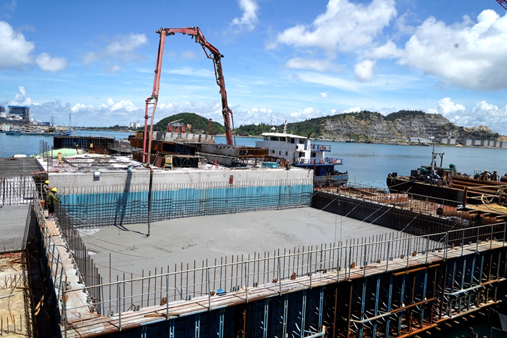 ▲東區(qū)化工碼頭項(xiàng)目胸墻澆筑作業(yè) 集團(tuán)當(dāng)前在建的10萬(wàn)噸級(jí)成品油碼頭、東區(qū)化工碼頭等碼頭泊位建設(shè)進(jìn)入沖刺階段,認(rèn)真貫徹市委市政府關(guān)于加快口岸開放工作的要求,計(jì)劃今年竣工驗(yàn)收;茂名港務(wù)中心已完成主體結(jié)構(gòu)施工,計(jì)劃今年建成投用,將為濱海新區(qū)樹立嶄新地標(biāo);30萬(wàn)噸級(jí)原油碼頭報(bào)批報(bào)建工作取得重大突破,項(xiàng)目岸線申請(qǐng)獲得國(guó)家交通運(yùn)輸部批復(fù),前期工作不斷加快推進(jìn),即將進(jìn)入實(shí)質(zhì)性實(shí)施階段,現(xiàn)代化深水大港的畫卷徐徐展開。 挖潛增效,劃轉(zhuǎn)老國(guó)企扭虧為盈,實(shí)現(xiàn)國(guó)有資產(chǎn)保值增值。