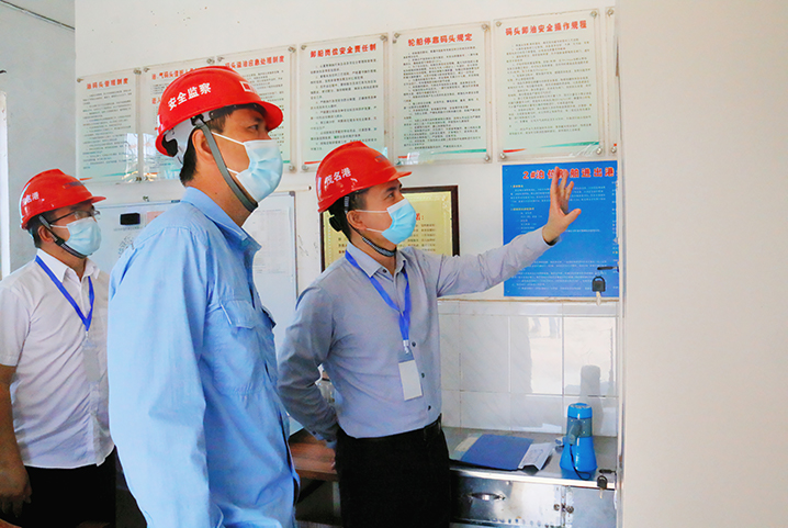 在中油王港及港口經(jīng)營公司,督導(dǎo)組一行認真檢查生產(chǎn)作業(yè)及疫情防控各項保障措施落實情況,并詳細向一線工作人員詢問工作流程、人員值守情況及生活狀況。