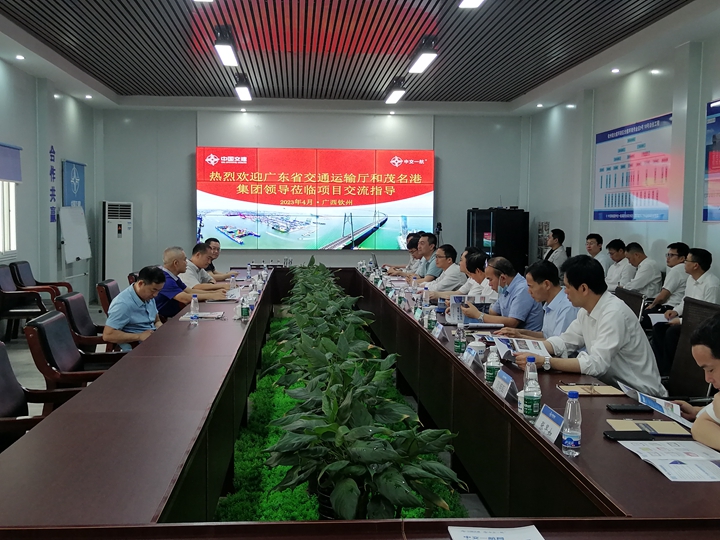 4月19日至20日,受廣東省交通運輸廳邀請,集團黨委副書記、總裁肖炳璋率隊應邀到廣西欽州港調研中交一航局“平安百年品質工程”重點示范工程大欖坪9#、10#泊位建設工程。集團黨委委員、總工程師蔡光章,相關部室及茂名港博賀新港區(qū)30萬噸級原油碼頭工程參建方陪同交流學習。