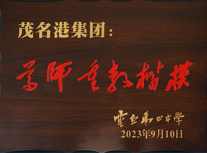 9月27日,茂名市電白第四中學(xué)校長蔣榮昌率領(lǐng)學(xué)校領(lǐng)導(dǎo)班子一行到訪茂名港集團(tuán)博賀新港區(qū)綜合辦公樓,代表學(xué)校全體師生向茂名港集團(tuán)贈(zèng)送“尊師重教楷模”牌匾以及“尊師重教先進(jìn)單位”榮譽(yù)證書,以感謝茂名港集團(tuán)多年來一直關(guān)心支持濱海新區(qū)教育事業(yè)發(fā)展,為電白第四中學(xué)的教育發(fā)展作出的貢獻(xiàn)。濱海控股公司總經(jīng)理梁祖釗代表茂名港集團(tuán)受贈(zèng),并感謝電白第四中學(xué)全體師生對(duì)茂名港集團(tuán)的認(rèn)可。