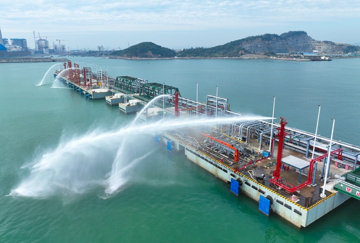 2023年12月27日,隨著8條“水龍”噴涌而出,博賀新港區(qū)東區(qū)化工碼頭消防系統(tǒng)聯(lián)運(yùn)調(diào)試工作取得圓滿成功,這標(biāo)志著繼油品碼頭之后,茂名港集團(tuán)化工碼頭也完成了由項(xiàng)目建設(shè)轉(zhuǎn)向生產(chǎn)運(yùn)營的關(guān)鍵一環(huán)。