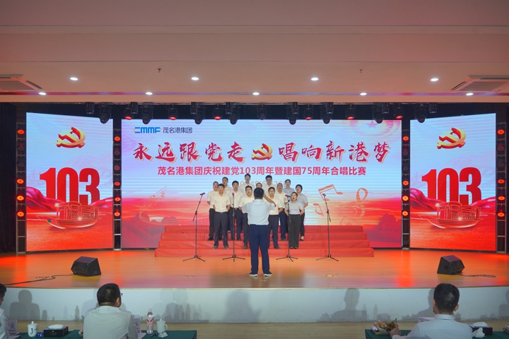 6月26日,茂名港集團(tuán)舉辦慶祝建黨103周年暨建國(guó)75周年“永遠(yuǎn)跟黨走,唱響新港夢(mèng)”主題紅歌大合唱比賽。來(lái)自集團(tuán)各黨支部的8支代表隊(duì)參加,以紅歌傳唱為契機(jī)、以紅色歌曲為傳播載體,重溫中國(guó)共產(chǎn)黨的崢嶸歲月和光輝業(yè)績(jī),并以最美好的祝福,向黨的103歲誕辰、新中國(guó)成立75周年獻(xiàn)禮!