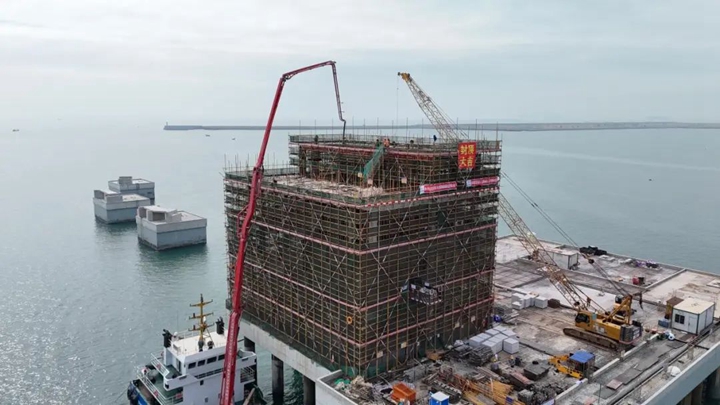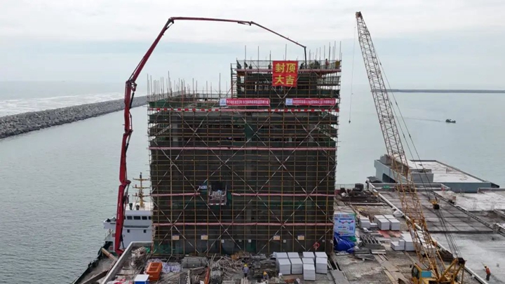 12月25日,隨著最后一方混凝土在工作樓頂層澆筑成型,茂名港博賀新港區(qū)30萬噸級原油碼頭工程工作樓順利封頂。從項目藍(lán)圖到喜封金頂,不僅標(biāo)志著項目取得了重要的階段性勝利,也是30萬噸級原油碼頭項目臨時黨支部在2024年取得的又一勝利戰(zhàn)果。